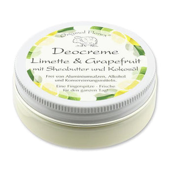 Erfrischend und belebend: Die Florex Deocreme Limette & Grapefruit ist das ideale Sommerduft-Erlebnis! Diese besondere Deocreme sorgt zuverlässig für Frische, ohne die Poren zu verstopfen. Dank ihrer antiseptischen Wirkung bekämpft sie unerwünschte Gerüche effektiv. Zudem spendet sie Feuchtigkeit und beruhigt empfindliche Haut. Angereichert mit Sheabutter, Kokosöl, Kakaobutter, Mandelöl und Zink bietet sie eine optimale Pflege.  Die handliche Dose mit Hygieneabdeckung macht die Anwendung praktisch und hygienisch. Die Deocreme ist frei von Aluminiumsalzen, Konservierungsmitteln, Palmöl und Alkohol – somit auch für Veganer geeignet. Hergestellt in Österreich steht sie für höchste Qualität und Natürlichkeit.  Mit der Florex Deocreme Limette & Grapefruit erlebst du langanhaltende Frische und Pflege auf natürliche Weise - überzeuge dich selbst!