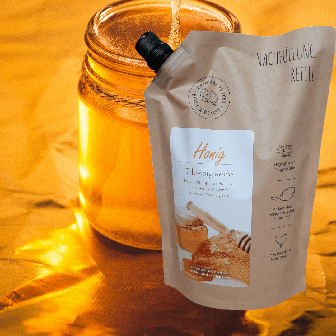 Florex Schafmilch Flüssigseife Nachfüllbeutel 1000 ml, Honig