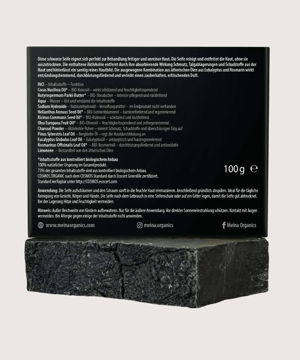 Diese schwarze Seife von Meina Naturkosmetik ist die ideale Lösung für fettige und unreine Haut. Dank ihrer einzigartigen Formel reinigt sie die Haut gründlich, ohne sie auszutrocknen. Die enthaltene Aktivkohle zieht Schmutz, überschüssiges Fett und schädliche Stoffe wie ein Magnet aus der Haut und hinterlässt ein geschmeidig reines Hautbild. Die ätherischen Öle von Eukalyptus und Rosmarin wirken entzündungshemmend und fördern die Durchblutung, während sie einen erfrischenden Duft hinterlassen. Gönnen Sie sich das luxuriöse Gefühl von klarem, reinem Haut mit Meina Naturkosmetik!