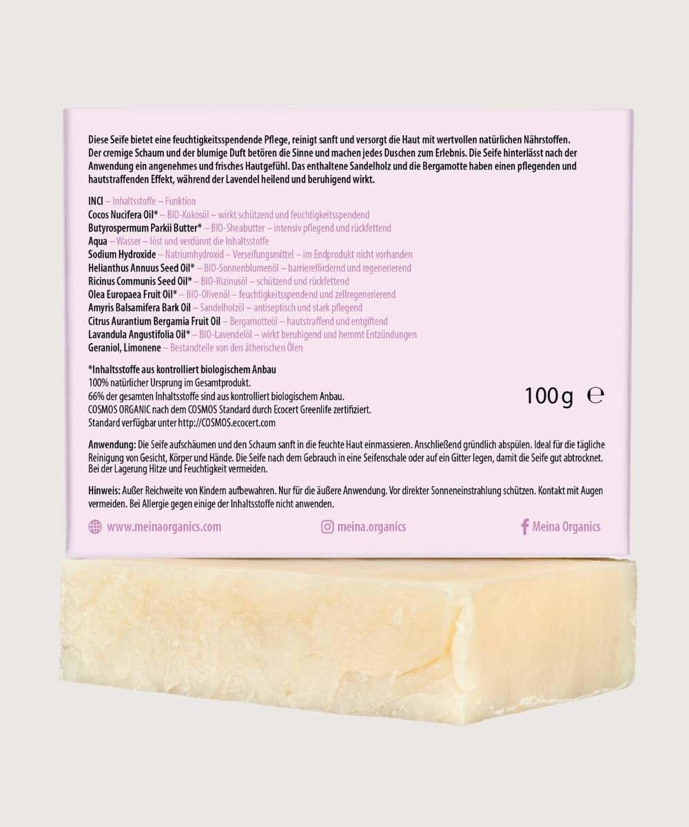 Meina Seife mit Bergamotte, Lavendel und Sandelholz