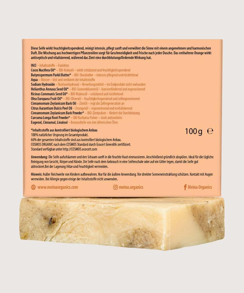 Meina Naturkosmetik Seife ist die ideale Wahl für alle, die auf der Suche nach einer feuchtigkeitsspendenden und intensiv reinigenden Pflege sind. Die hochwertige Mischung aus Pflanzenölen sorgt für Geschmeidigkeit und Frische nach jeder Dusche. Der angenehme Duft verwöhnt die Sinne und lässt dich entspannen. Dank der antiseptischen Wirkung von Orange und der durchblutungsfördernden Eigenschaften von Zimt wird deine Haut nicht nur gereinigt, sondern auch vitalisiert. Gönn dir mit Meina Naturkosmetik Seife ein luxuriöses Duscherlebnis, das deine Haut verwöhnt und pflegt.