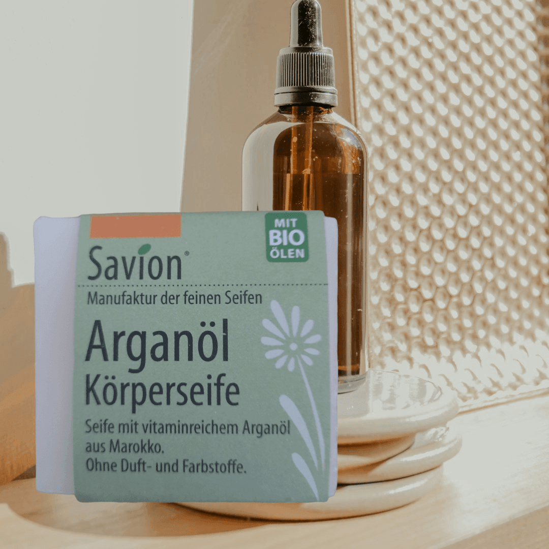 Die Savion Körperseife mit vitaminreichem Arganöl aus Marokko ist ein wahres Wundermittel für deine Hautpflege. Dank des hohen Anteils an Arganöl, das zu 5 % in der Seife enthalten ist, wird deine Haut optimal rückgefettet und mit wichtigen Nährstoffen versorgt. Diese Seife eignet sich besonders gut für sensible Hauttypen, da sie ohne Duft- und Farbstoffe sowie ätherische Öle auskommt.
