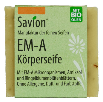 Entdecken Sie die innovative Körperseife "Savion" mit EM-A Mikroorganismen, Arnikaöl und Ringelblumenblütenblättern. Diese einzigartige Formel enthält keine Allergene, Duft- oder Farbstoffe und ist daher besonders sanft zur Haut. Die Kombination aus hochwertigen Inhaltsstoffen sorgt für eine schonende Reinigung und Pflege zugleich. Verwöhnen Sie Ihre Haut mit der natürlichen Kraft von "Savion" und erleben Sie ein einzigartiges Duscherlebnis. Überzeugen Sie sich selbst von der Wirksamkeit dieses Produkts und gönnen Sie Ihrer Haut die Pflege, die sie verdient.