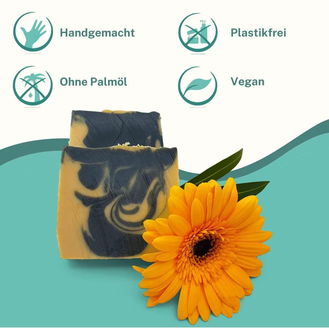 Nach Gebrauch trocken lagern (Seifenschale mit Abtropfrillen). Je trockener die Seife zwischen den Anwendungen, desto ergiebiger – ein Stück hält je nach Nutzung typischerweise mehrere Wochen.