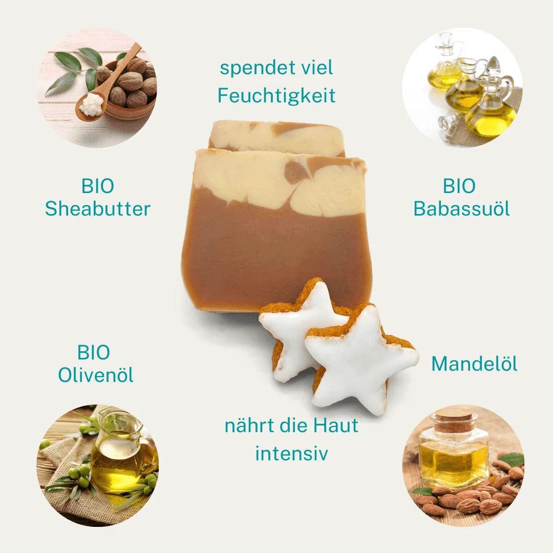 Die sorgfältig ausgewählten Inhaltsstoffe stammen aus kontrolliert biologischem Anbau und werden schonend verarbeitet, um ihre natürliche Wirkung zu bewahren. Diese Seife eignet sich ideal für die tägliche Anwendung am ganzen Körper, besonders bei trockener oder empfindlicher Haut. Sie reinigt sanft, ohne auszutrocknen, und hinterlässt einen zarten Duft, der den Alltag angenehm begleitet.