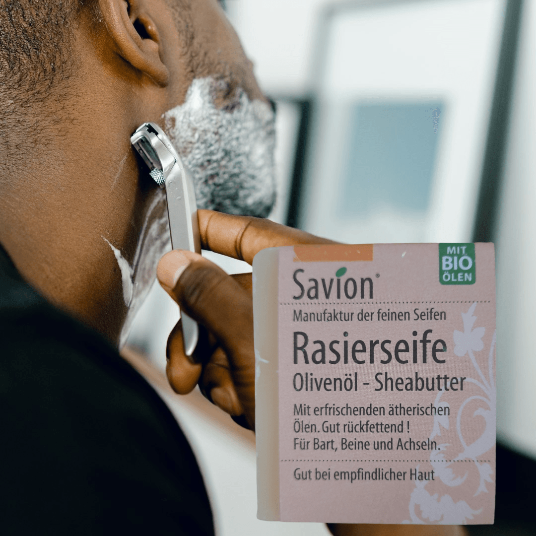 Entdecken Sie die Savion Rasierseife, ein wahres Pflegewunder für Ihre Haut. Diese Seife ist nicht nur ein Produkt, sondern ein Erlebnis, das Ihnen hilft, sich in Ihrer Haut wohlzufühlen. Egal ob Bart, Beine oder Achselhaare – mit unserer Rasierseife gelingt Ihnen eine sanfte und gründliche Rasur. Der hohe Rückfettungsanteil von 6 % sorgt dafür, dass Ihre Haut auch nach der Anwendung geschmeidig bleibt und nicht austrocknet.