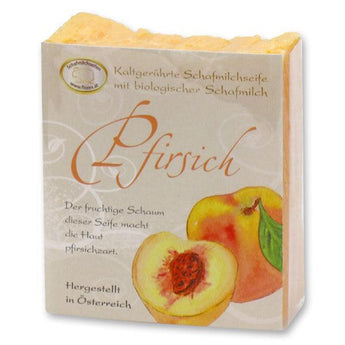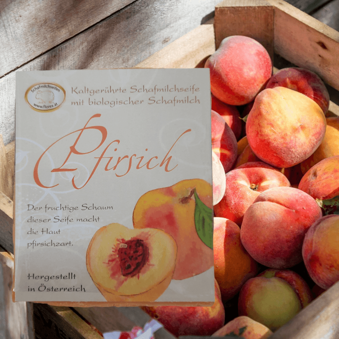 Biologische Schafmilch, Kokosöl, Olivenöl, Glyzerin, Lanolin, Pfirsich
