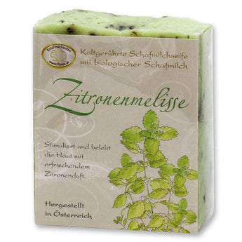 Biologische Schafmilch, Kokosöl, Olivenöl, Glyzerin, Lanolin, Zitronenmelisseblätter