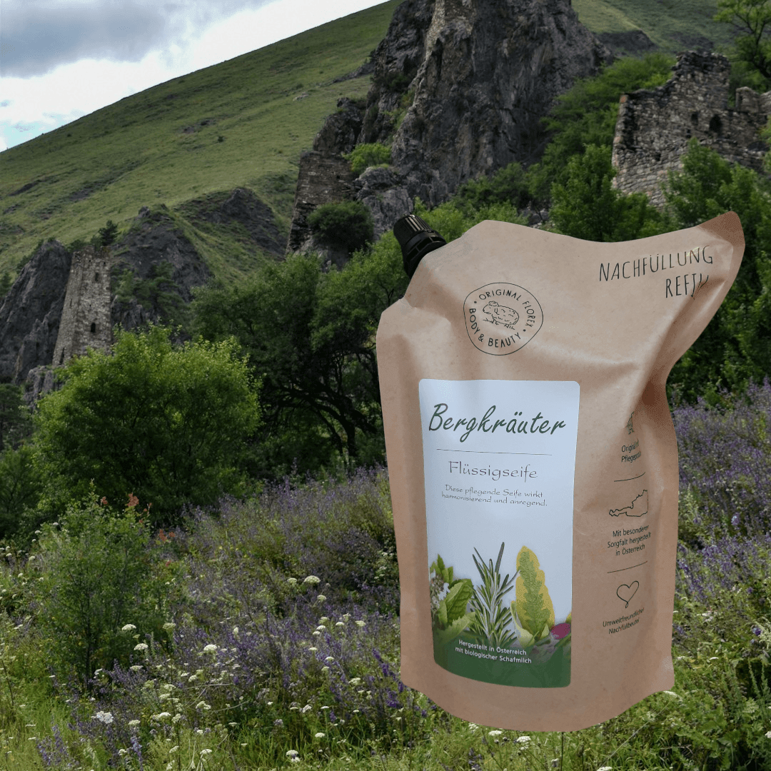 Gönnen Sie Ihrer Haut jetzt die sanfte Pflege der Florex® Flüssigen Schafmilchseife Bergkräuter und erleben Sie jeden Tag ein Gefühl von Frische und Harmonie – bestellen Sie noch heute!