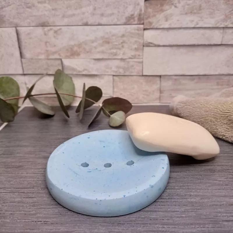 Ovale Seifenschale perforiert mit 3 Ablauflöchern. Handgefertigtes Produkt aus Hochleistungsbeton.