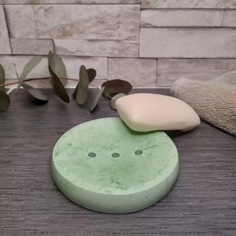 Ovale Seifenschale perforiert mit 3 Ablauflöchern. Handgefertigtes Produkt aus Hochleistungsbeton.