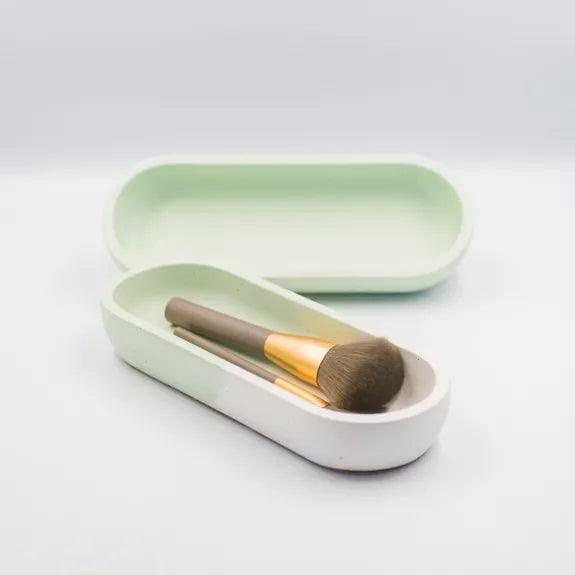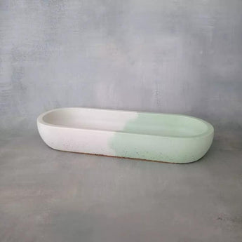 Das Bella-Tablett ist aus durchgefärbtem Beton handgefertigt. Es kann  als leere Tasche verwendet werden, ist aber auch im Badezimmer nützlich,  um Schmuck, Make-up oder Brillen aufzubewahren. Jedes Modell ist  einzigartig. Daher sind die Verteilung der Farbe und das Vorhandensein  kleiner Luftbläschen von einem Teil zum anderen unterschiedlich.