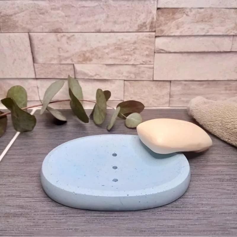 Ovale Seifenschale perforiert mit 3 Ablauflöchern. Handgefertigtes Produkt aus Hochleistungsbeton.