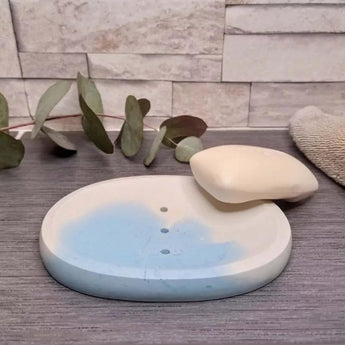 Ovale Seifenschale perforiert mit 3 Ablauflöchern. Handgefertigtes Produkt aus Hochleistungsbeton.