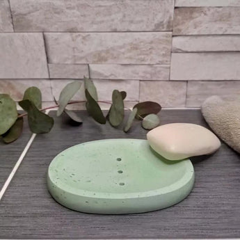Ovale Seifenschale perforiert mit 3 Ablauflöchern. Handgefertigtes Produkt aus Hochleistungsbeton.