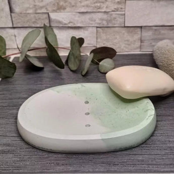 Ovale Seifenschale perforiert mit 3 Ablauflöchern. Handgefertigtes Produkt aus Hochleistungsbeton.