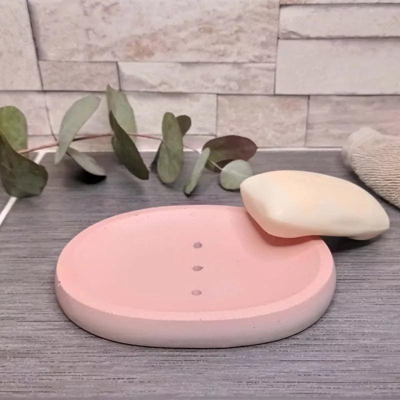 Ovale Seifenschale perforiert mit 3 Ablauflöchern. Handgefertigtes Produkt aus Hochleistungsbeton.