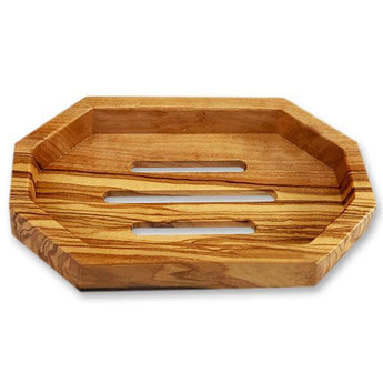 Diese handgefertigte achteckige Seifenschale aus Olivenholz ist ein echtes Unikat. Das harte Holz zeichnet sich durch eine einzigartige Maserung aus, die jeden Artikel besonders macht. Die Schale verfügt über einen Rand, der nicht nur optisch ansprechend ist, sondern auch dafür sorgt, dass die Seife sicher aufbewahrt wird. Mit dieser hochwertigen Seifenschale bringen Sie ein Stück Natur in Ihr Badezimmer und setzen gleichzeitig auf Nachhaltigkeit. Ein Must-Have für alle Liebhaber von handgefertigten Produkten!