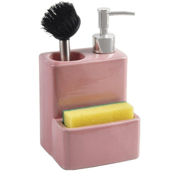 Seifenspender mit Bürste und Schwamm, Keramik rosa