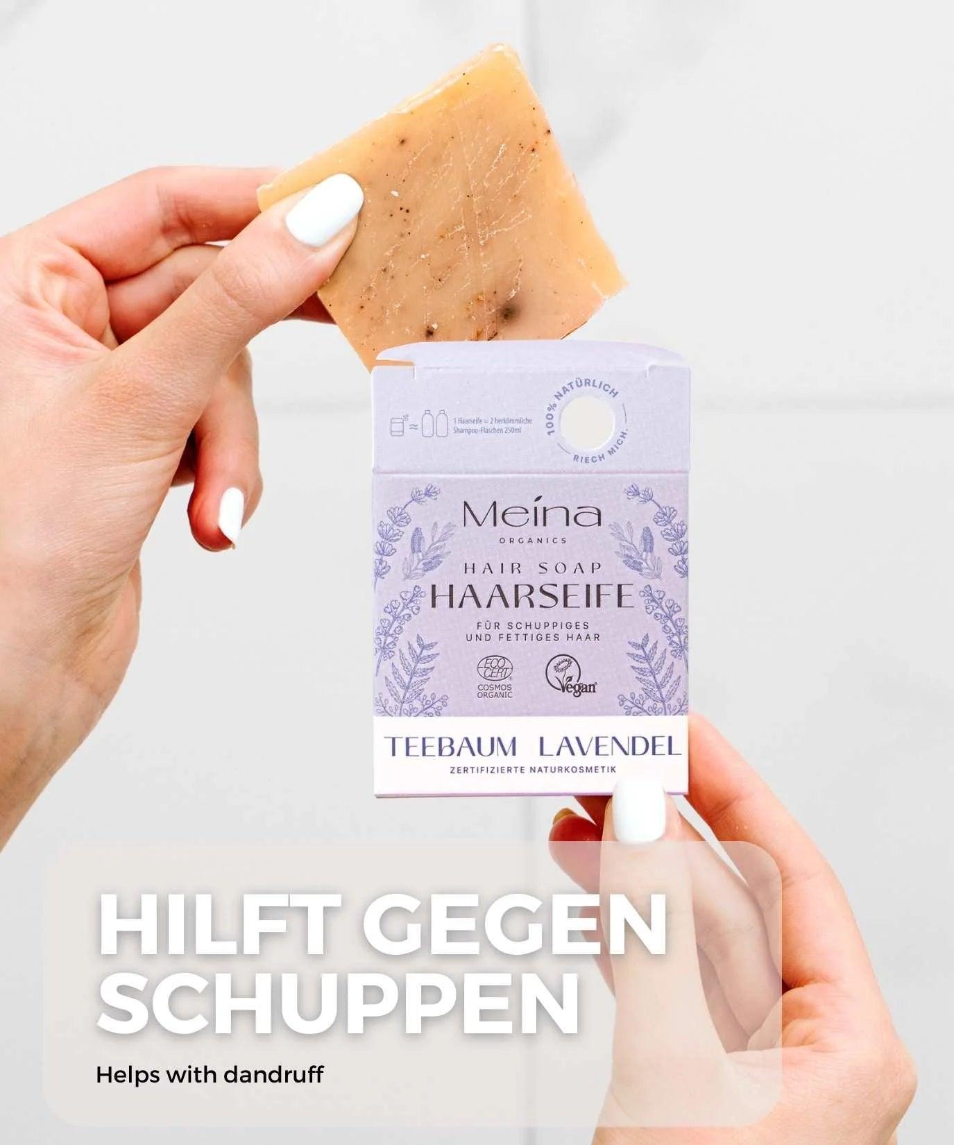 Entdecke die transformative Kraft unserer Meina Haarseife Teebaum Lavendel, die speziell für schuppiges und schnell fettendes Haar entwickelt wurde. Diese natürliche Lösung bringt Deine Haare ins Gleichgewicht und schenkt Dir ein erfrischendes Pflegeerlebnis, das Du lieben wirst!
