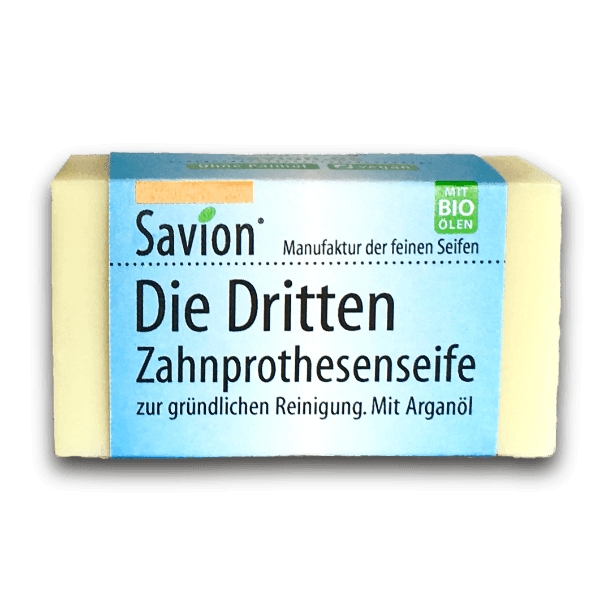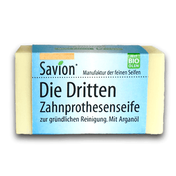 Savion Zahnprotesenseife zur gründlichen Reinigung. Mit Arganöl.