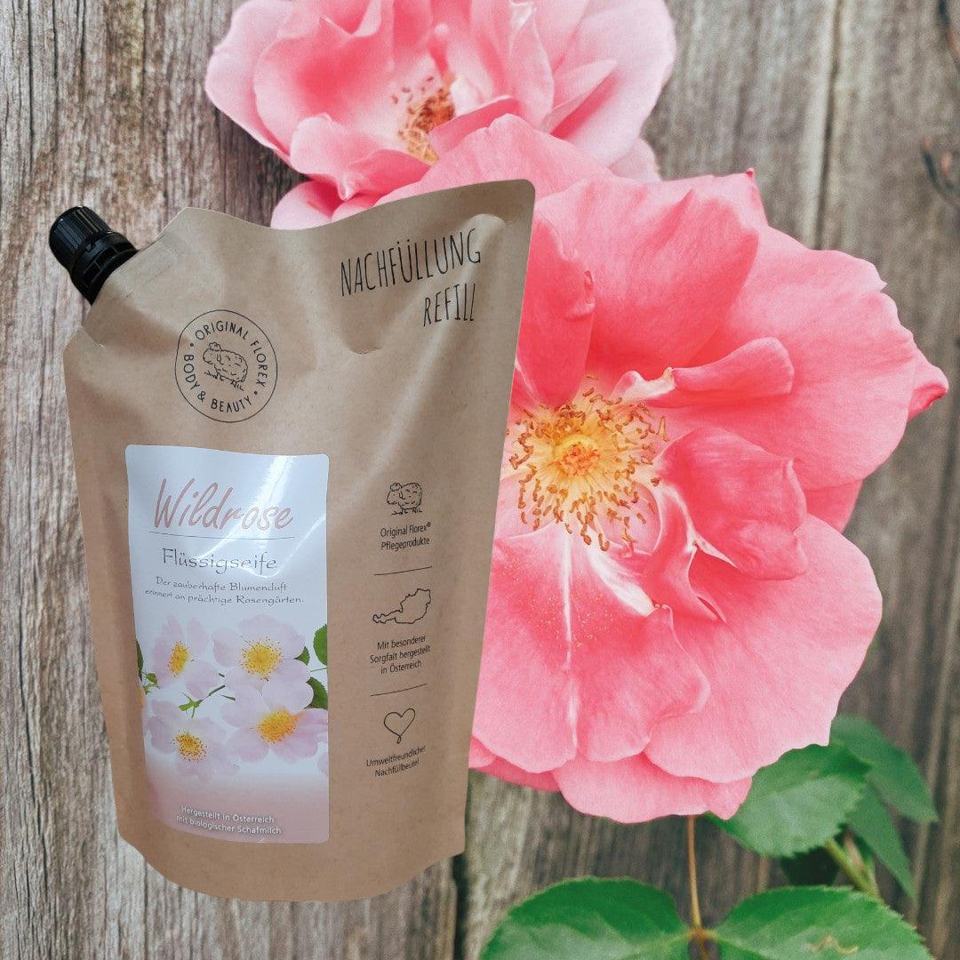 Florex Schafmilch Flüssigseife Nachfüllbeutel 1000 ml, Wildrose