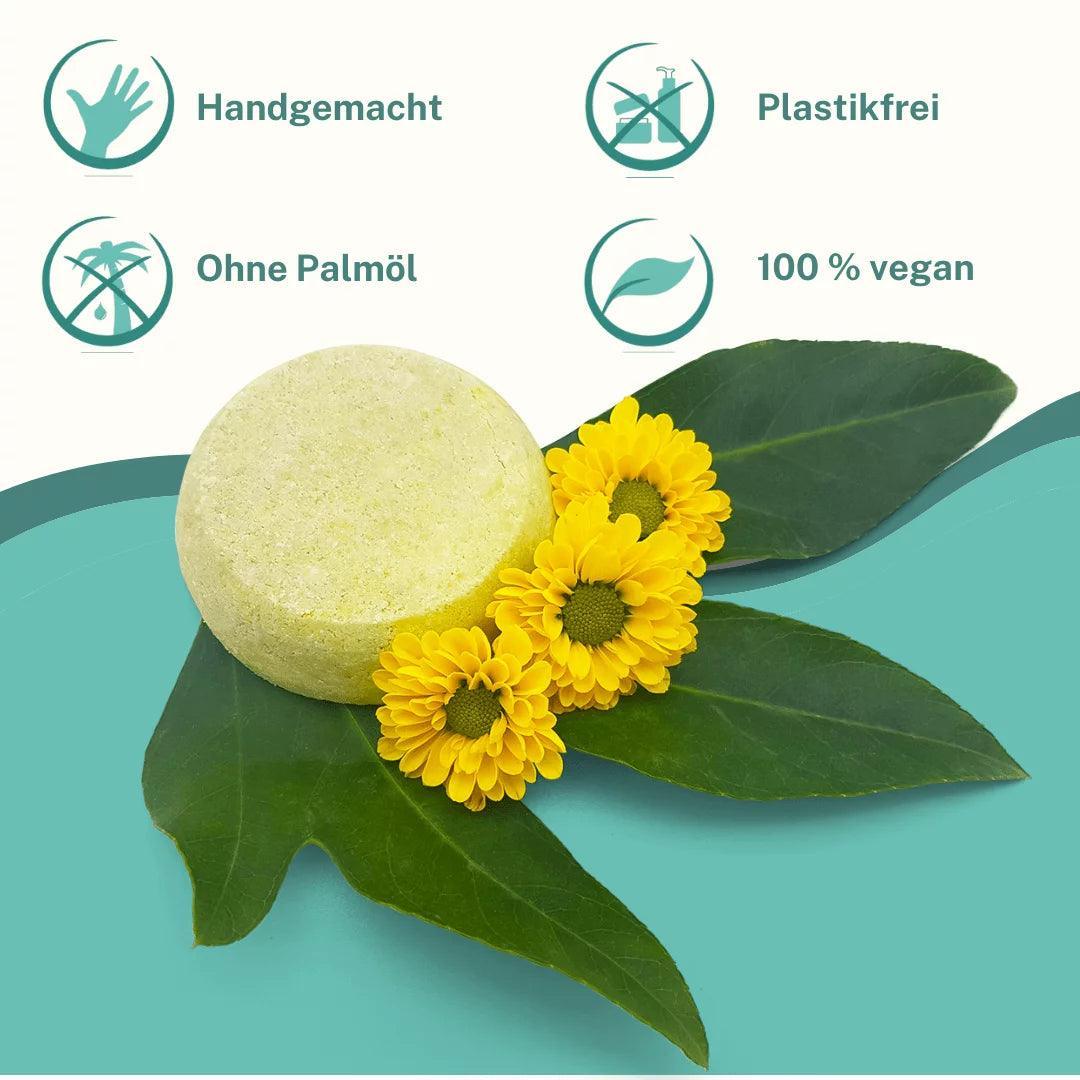 Dieses feste Shampoo ist beduftet mit dem frischen Duftöl Green Tea.  Es ist besonders gut geeignet bei normalem bis schnell nachfettendem  Haar und trockenen Spitzen.